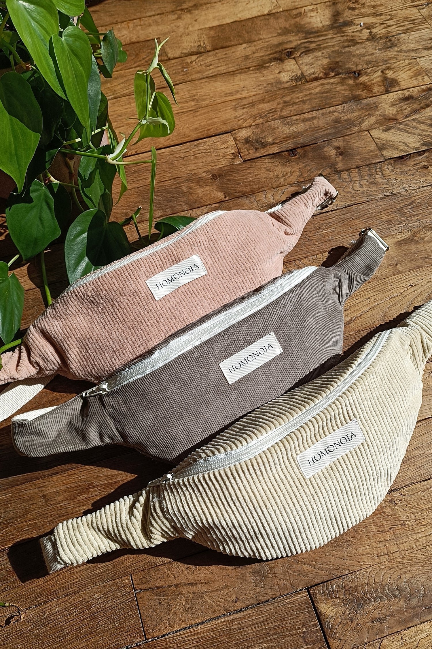 Banane en velours côtelé beige