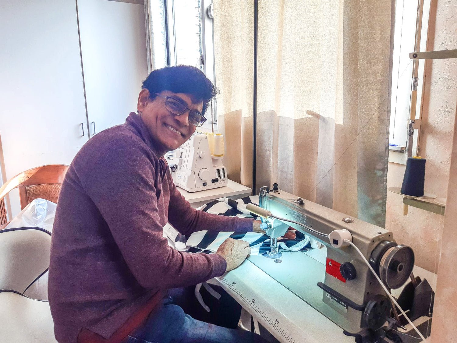 Ce sac cabas a été fabriqué par Cyril, un couturier en situation précaire, originaire du Sri Lanka, qui nous suit depuis le tout début de l'aventure !